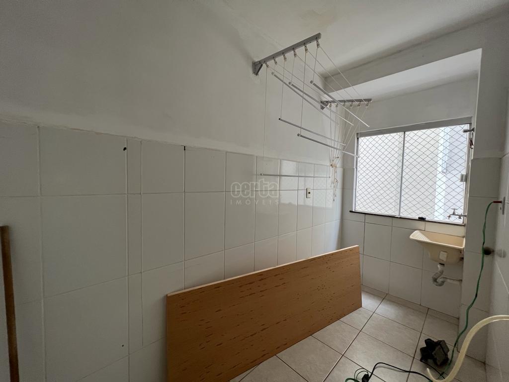 Ele possui sala de salas de estar e jantar integradas com a cozinha, 2 quartos, área de serviço, banheiro, e 1 vaga de garagem.